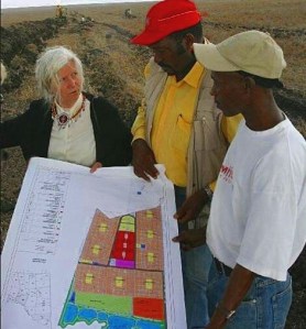 So in 2007, with a loan from the Acumen Fund, Jamii Bora broke ground on Kaputei Town, a housing project on 293 acres of prime land about 40 miles south of Nairobi. Here, 2,000 families of former street beggars will live in tidy 3-room houses with a shower, toilet, garden and kitchen in neighborhoods with playgrounds, parks, trees, churches and town halls. Jamii Bora provides the 10-15 year housing loans that work out to payments of about $32/month – what many families pay to rent in the degraded slums. Working together, Jamii Bora members are building a green community with wetlands, recycled wastewater, and a thriving economic center and industrial zone of its own.