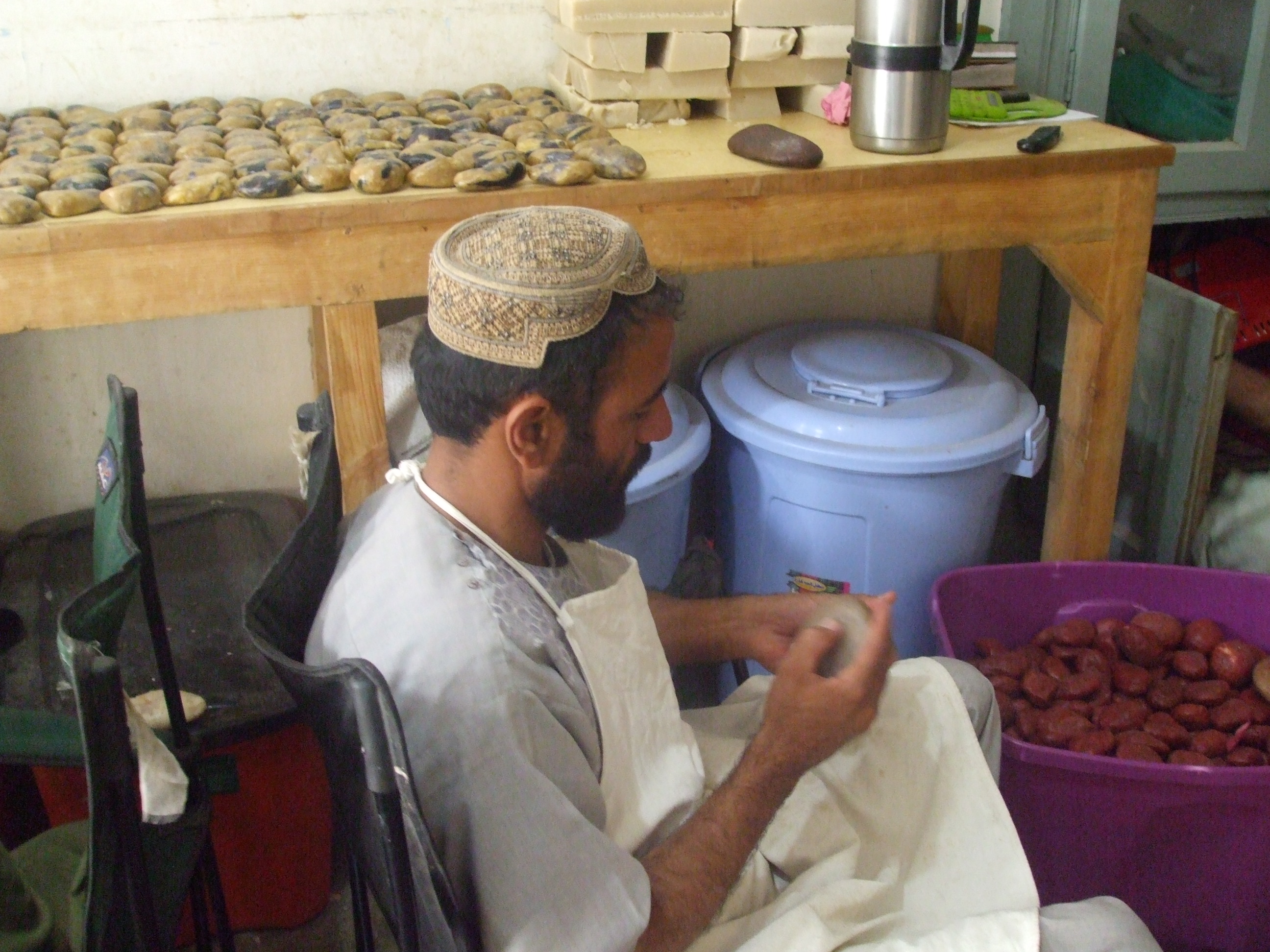 Chayes figured that if she could establish a cooperative to make high-end soaps, it would not only mean good jobs for co-op members, but also encourage local farmers to produce flowers, fruits and herbs instead of opium. And four years later, Arghand is experiencing the sweet smell of success – with 11 women and 8 men working cooperatively in a small factory producing some of the most luscious soaps and creams you can imagine.